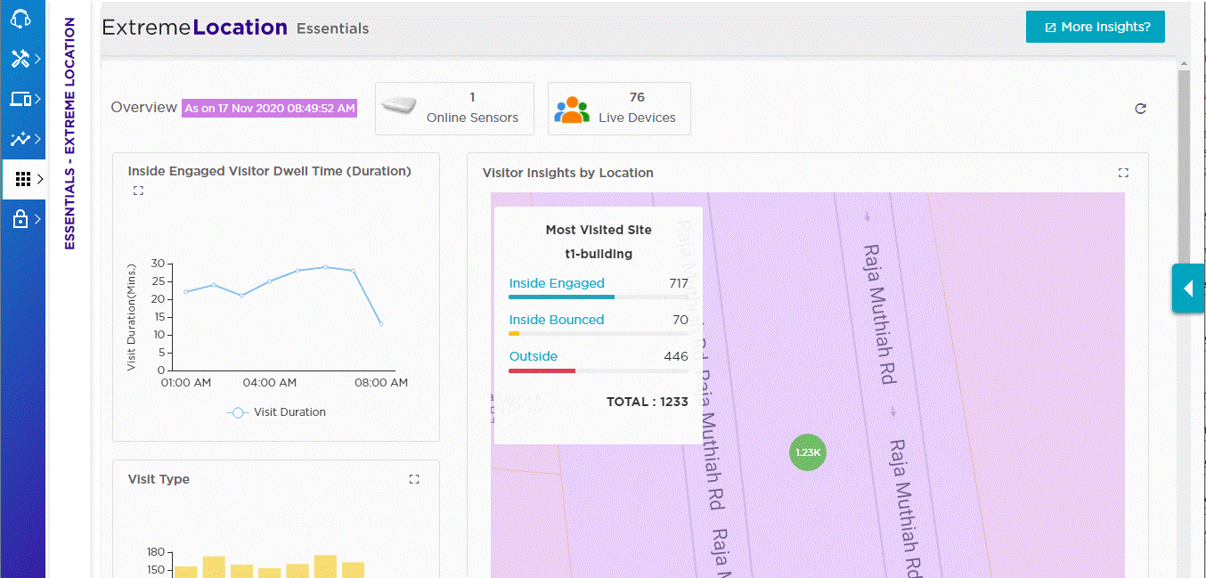 To access more ExtremeLocation Essentials features and open the application in a separate browser tab, select More Insights.